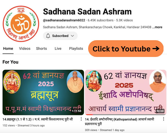 ज्ञान के साधनों का अनुसरण करके अद्धैत-परमात्मा का साक्षात्कार ही साधना सदन का उद्देश्य है